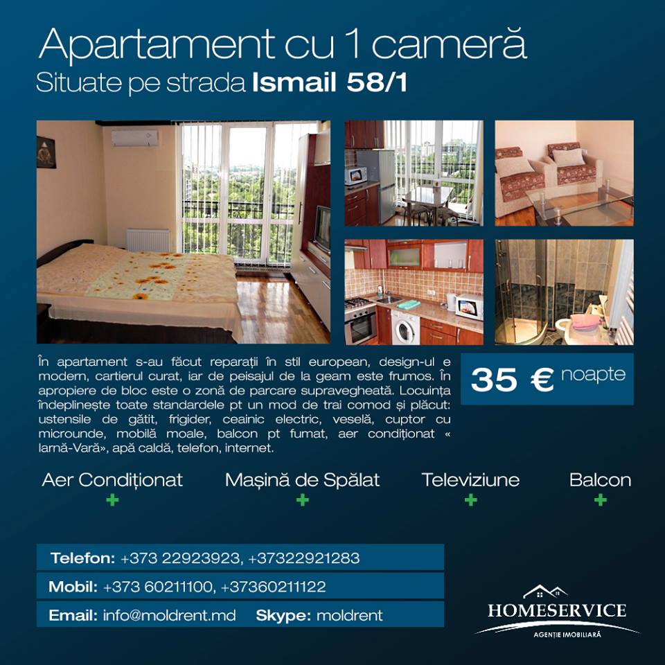 Apartamente pe zi in Chisinau de la 25 Euro pe zi